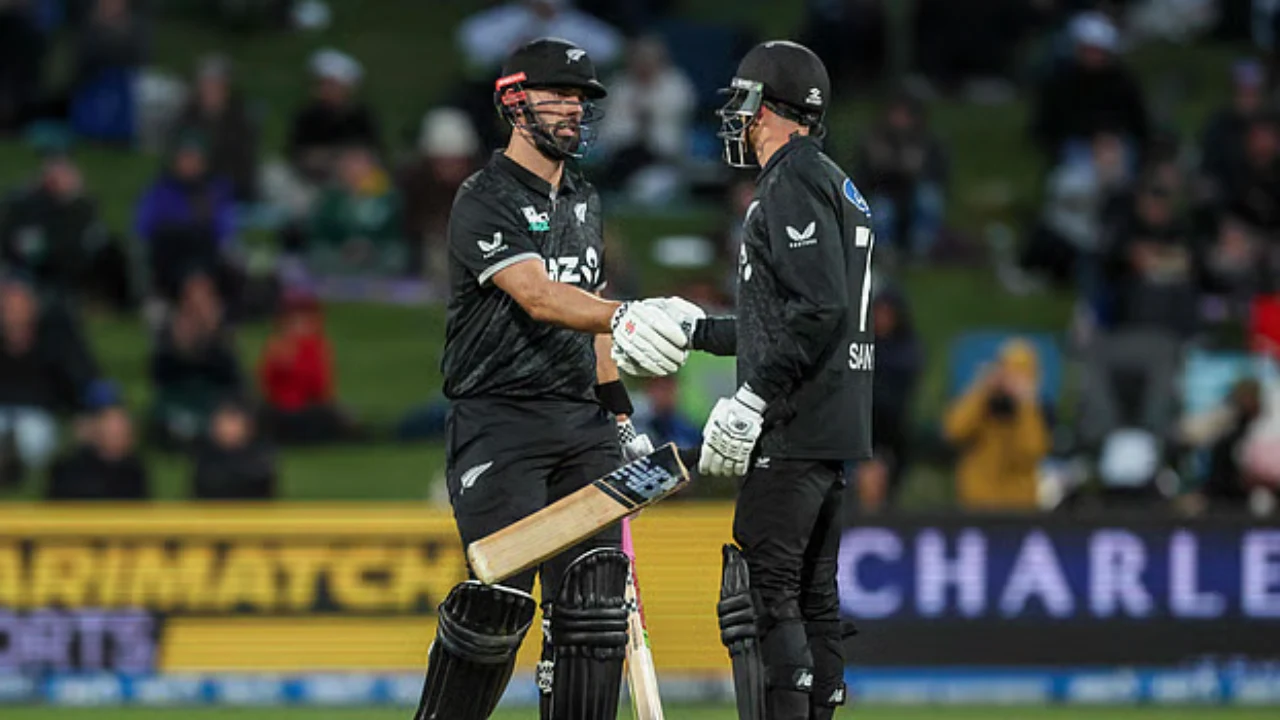 রাচিন রবীন্দ্রর ৫৪, ড্যারিল মিচেলের ৫৬ এবং শেষ দিকে মিচেল স্যান্টনারের ১৭ বলে ৩৪ রানের ঝড়ো ইনিংসে ৩৩.১ ওভারেই জয় নিশ্চিত করে কিউইরা।