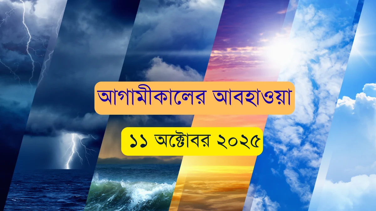 আগামীকালের আবহাওয়া ১১ অক্টোবর ২০২৫ তারিখে দেশের বেশ কিছু অঞ্চলে বৃষ্টি ও বজ্রসহ বৃষ্টির সম্ভাবনা রয়েছে। খুলনা, বরিশাল ও চট্টগ্রাম বিভাগের কিছু স্থানে হালকা থেকে মাঝারি বৃষ্টি হতে পারে। তবে সারাদেশে দিন ও রাতের তাপমাত্রা সামান্য বৃদ্ধি পেতে পারে বলে জানিয়েছে আবহাওয়া অধিদপ্তর।