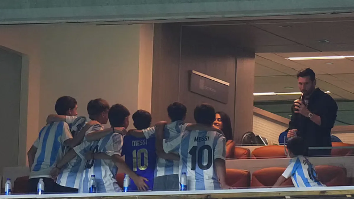 গ্যালারির ভিআইপি বক্সে বসে জীবনসঙ্গী আন্তোনেল্লা রোকুজ্জো ও সন্তানদের সঙ্গে ম্যাচ উপভোগ করেছেন মেসি। মাঝে কয়েকজন ছোট ভক্ত তাঁর কাছে এসে শুভেচ্ছা বিনিময়ও করে।