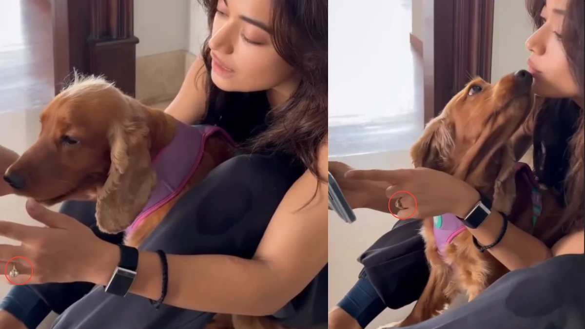 সম্প্রতি নিজের ইনস্টাগ্রামে একটি ছোট ভিডিও পোস্ট করেছেন রাশমিকা মান্দানা। সেখানে দেখা যায়, তিনি মেঝেতে বসে আছেন তাঁর প্রিয় কুকুর আওরার সঙ্গে। হাতে ফোন, আর পেছনে বাজছে তাঁর সিনেমা থম্মা-এর জনপ্রিয় গান ‘রহে না রহে হুম’। ফোনের দিকে ইশারা করতে করতেই ক্যামেরায় ধরা পড়ে তাঁর হাতে ঝলমলে বাগদানের আংটি!