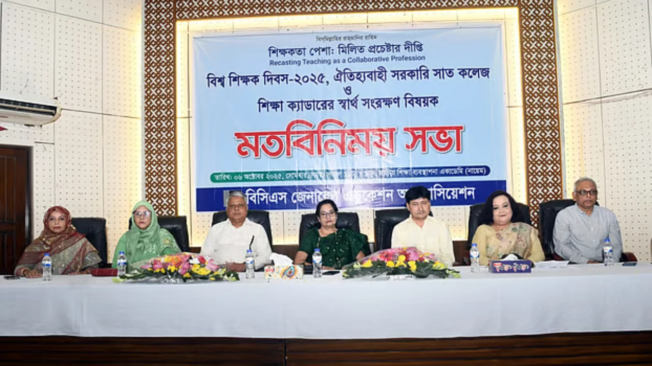 অনুষ্ঠানটির আয়োজন করে বিসিএস জেনারেল এডুকেশন অ্যাসোসিয়েশন, যার বিষয় ছিল ‘বিশ্ব শিক্ষক দিবস ২০২৫: ঐতিহ্যবাহী সরকারি সাত কলেজ ও শিক্ষা ক্যাডারের স্বার্থ সংরক্ষণ।’
